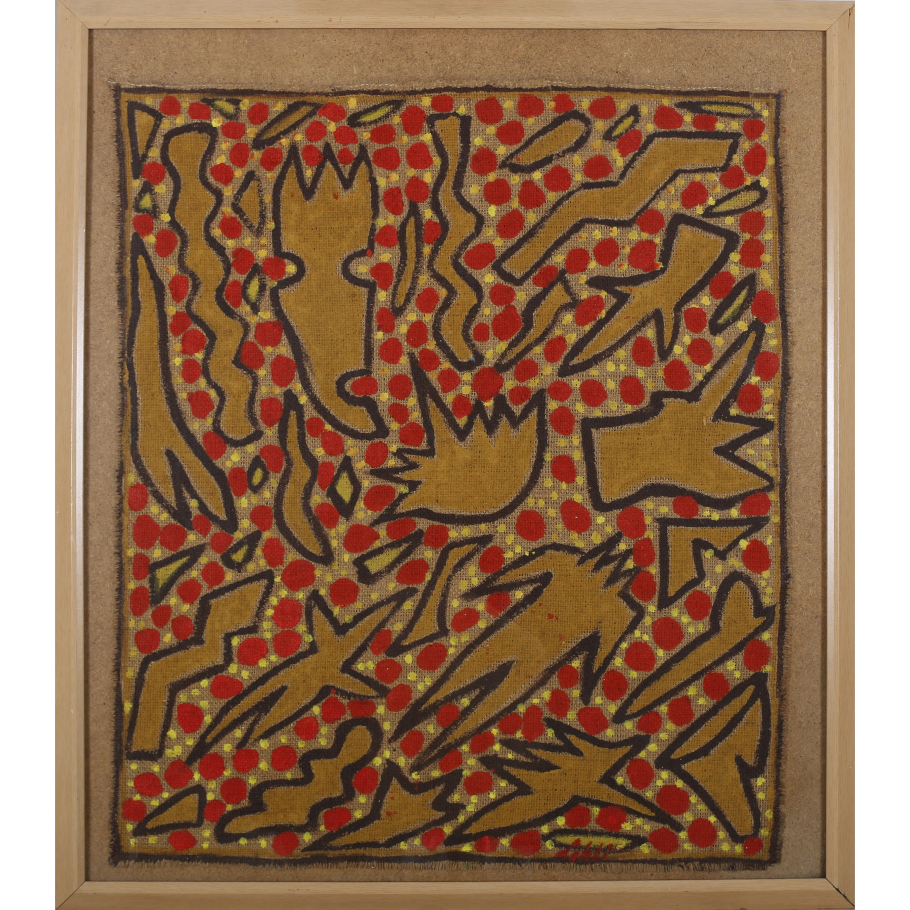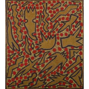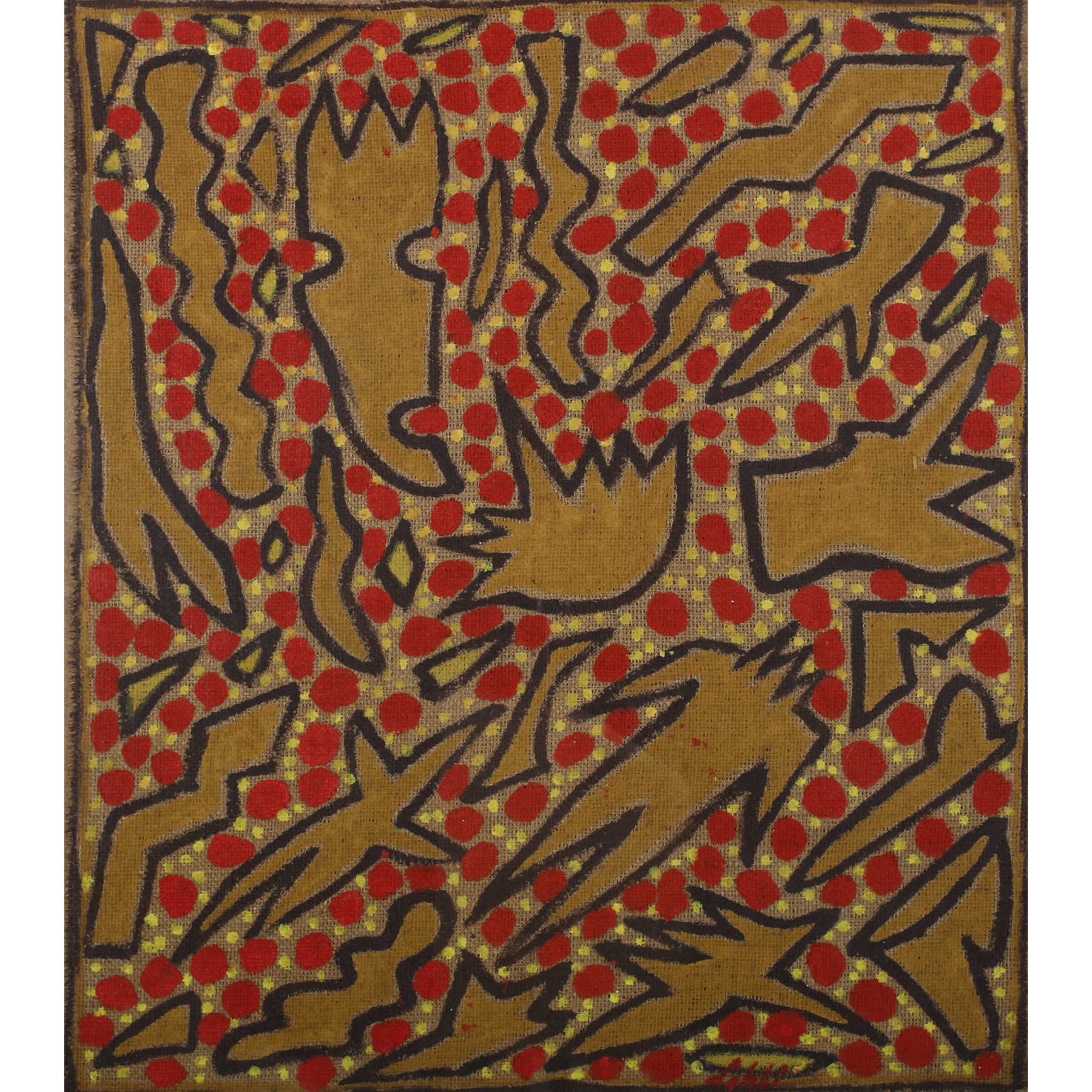 - Description: Acrylique sur toile de jute de Abderrazak SAHLI (1941-2009), 67x59 cm, Signée en rouge en bas à droite